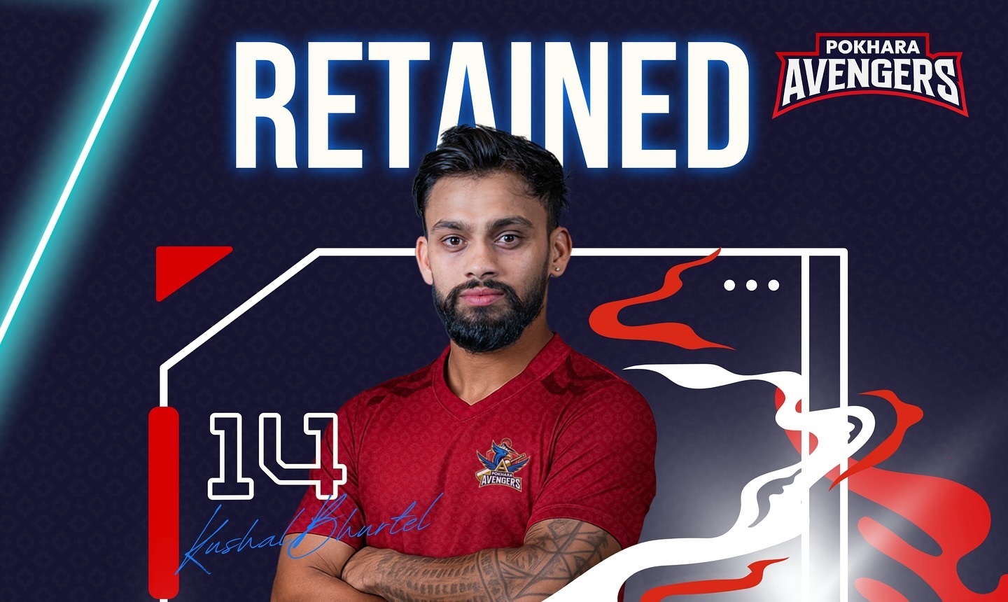 नेपाल प्रिमियर लिगको दोस्रो सिजनका लागि पोखरा एभेन्जर्सले मार्की खेलाडी कुशल भुर्तेलसहित ७ खेलाडीलाई रिटेन गरेको छ।