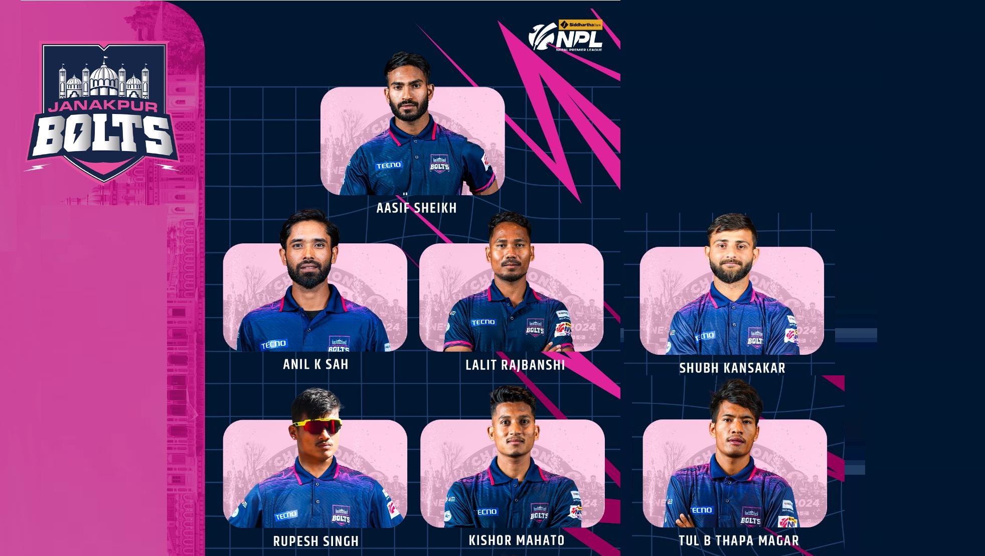 नेपाल प्रिमियर लिगको दोस्रो सिजनका लागि साविक विजेता जनकपुर बोल्ट्सले सात खेलाडी रिटेन गरेको छ।