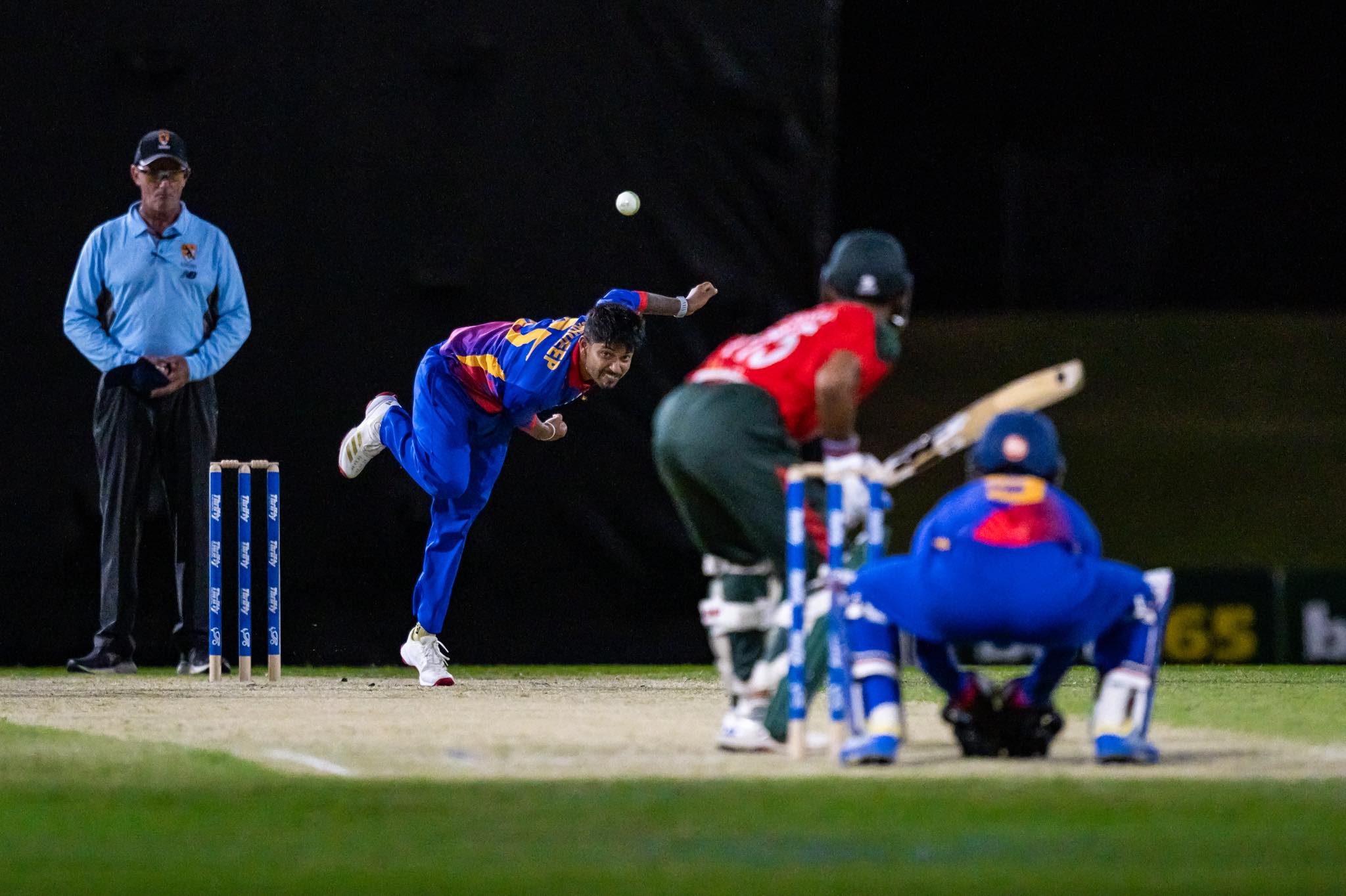 त्यसअघि नेपालका लगि कुशल भुर्तेलले ७ बलमा १२ रन, आसिफ शेखले २४ बलमा २८ रन, लोकेश बमले १० बलमा १५ रन, रोहित पौडेल १० रन र दीपेन्द्रसिंह ऐरी १ रन बनाए।