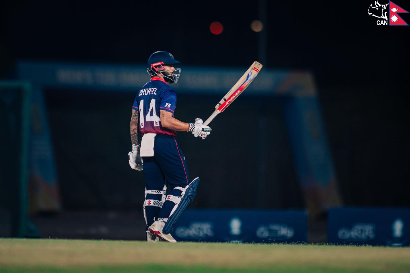 नेपालका लागि ओपनर कुशल भुर्तेलले अर्धशतक प्रहार गरे। अन्तिम ओभरको पाँचौ बलमा आउट भएका भुर्तेलले ५६ बलमा ३ चौका र ३ छक्काको मद्दतमा ६६ रन बनाए।