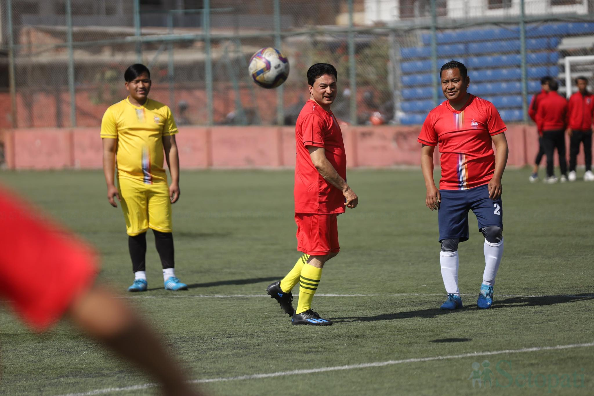 केपी ओली कप: नेता-कलाकारले गरे बराबरी गोल (तस्बिरहरू)