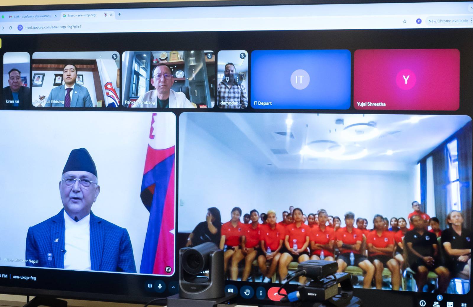 शनिबार प्रधानमन्त्री निवास बालुवाटारबाट भर्चुअल माध्यमबाट एएफसी वुम्नस एसिया कप २०२६ अन्तर्गत समूह ‘एफ’ को छनोटमा उज्वेकिस्तानविरूद्धको खेलमा जीतका लागि उनले शुभकामना दिएका हुन्। नेपाली खेलाडीहरू उज्वेकिस्तानबाट भर्चुअल माध्यमबाट जोडिएका थिए।
