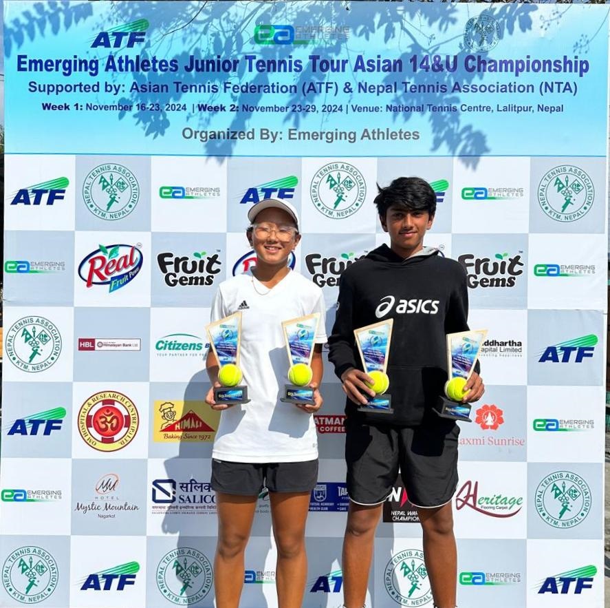 नेपाल टेनिस संघ र इमर्जिङ एटलिट्सद्वारा संयुक्त आयोजित प्रतियोगिताको गल्र्स सिगल्समा नेपालकी शिभाली गुरुङ पहिलो भएकी थिइन्।
